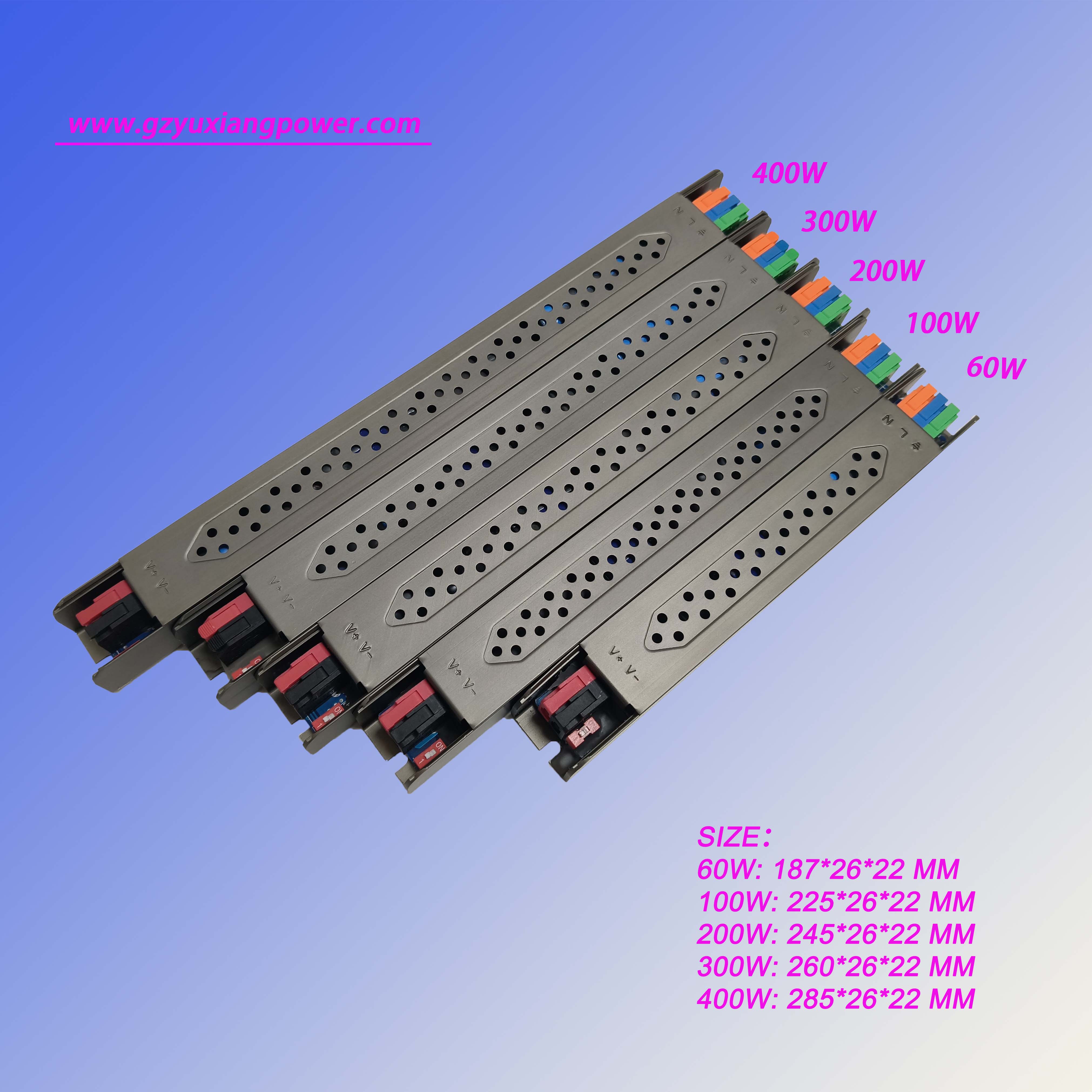 4. يوفر مصدر الطاقة LED القابل للتعديل والضيق للغاية تصنيفات الطاقة بما في ذلك 60W، 100W، 200W، و400 واط، لتلبية متطلبات الطاقة المتنوعة بدءًا من المساحات المدمجة وحتى المشاريع واسعة النطاق.